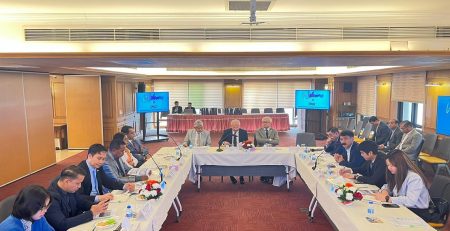 MCCI hosted a discussion with the visiting delegation of the Ministry of Economy, Trade and Industry (METI), Japan, at its Gulshan office on 16 February 2023. The purpose of the meeting was to explore trade opportunities between Bangladesh and Japan. Mr. Nakagawa Kazutaka, FTA Facilitator, Economic Partnership Division, Trade Policy Bureau, and Mr. Suzuki Hiroshi, Assistant Director, Economic Partnership Division, Trade Policy Bureau, represented METI during the discussion. Members of the MCCI Board of Directors who were present during the discussion were: President Mr. Md. Saiful Islam, Senior Vice-President Mr. Kamran T. Rahman, Vice-President Mr. Habibullah N. Karim, and Director Mr. Syed Tareque Md. Ali.