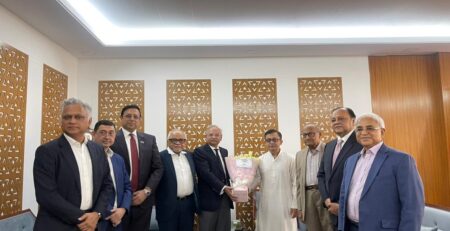 Office-bearers of the Metropolitan Chamber of Commerce and Industry, Dhaka headed by its President, Mr. Md. Saiful Islam, called on Mr. Mohammad Salahuddin, Secretary, Prime Minister’s Office, at his office at 12:00 noon on Sunday, 08 January 2023. The other members of the delegation were Senior Vice-President Mr. Kamran T. Rahman, Vice-President Mr. Habibullah N. Karim, and Former Presidents Ms. Nihad Kabir and Mr. Syed Nasim Manzur.